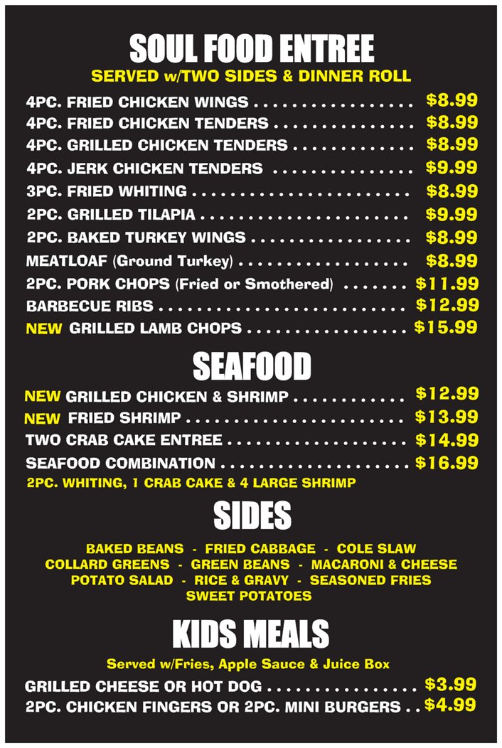 Our extensive menu is filled with classic favorites like chicken and ribs meatloaf catfish greens. 17 in DCs Shaw neighborhood at 1819 7th St.